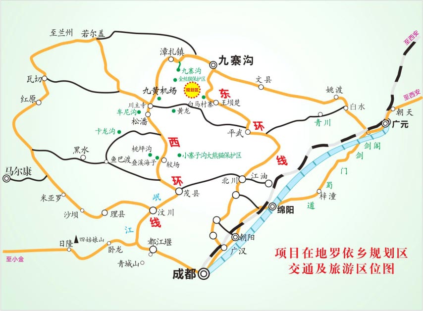 項目地處阿壩州九寨溝—黃龍精品旅游區(qū)內(nèi),位于四川省重要的旅游干線——九環(huán)線上,是九寨溝風(fēng)景名勝區(qū)、白河金絲猴自然保護區(qū)和勿角大熊貓自然保護區(qū)三個區(qū)域合圍。
