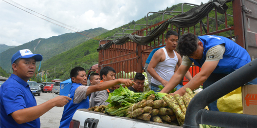 購買的6噸新鮮蔬菜送往受災比較嚴重的漳扎鎮(zhèn)、中查村、郎寨村、上四寨村、龍康村、牙屯村、永竹村......
