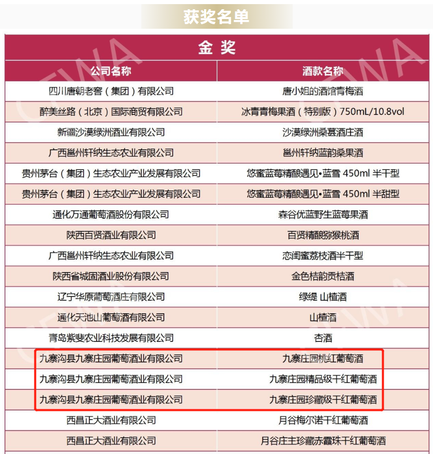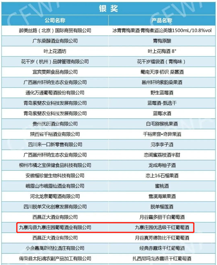 九寨溝縣九寨莊園葡萄酒業有限公司多款紅酒獲得金獎、銀獎。