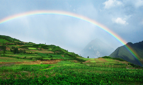 羅依鄉海拔1600-2000米,地貌屬凹形,稱之為山區“小盆地”,全年平均溫度5.7℃,夏季平均氣溫11℃,夏短冬長,晝夜溫差大,氣候垂直差異明顯。四周山脈延綿,海拔高達3000米,山頂積雪期長達7個月,積雪環抱,春秋季常現彩云奇景,甚是壯麗。