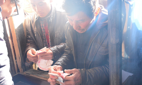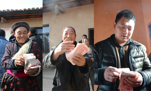 2017年1月23日下午,盡管九寨溝縣羅依山上溫度很低,但在九寨溝現(xiàn)代生態(tài)休閑農(nóng)業(yè)產(chǎn)業(yè)園項(xiàng)目現(xiàn)場(chǎng),農(nóng)民兄弟們卻感受到了陽光般的溫暖。這里的桌上,擺滿了成捆成捆被堆成小山狀的鈔票。藏族兄弟澤仁從川玖集團(tuán)工作人員手中接過了自己的工資,數(shù)一數(shù)5萬多元,他樂呵呵地對(duì)筆者說,“錢拿到手了,明天我就給家里換一個(gè)大彩電,過年好看春節(jié)聯(lián)歡晚會(huì)……”